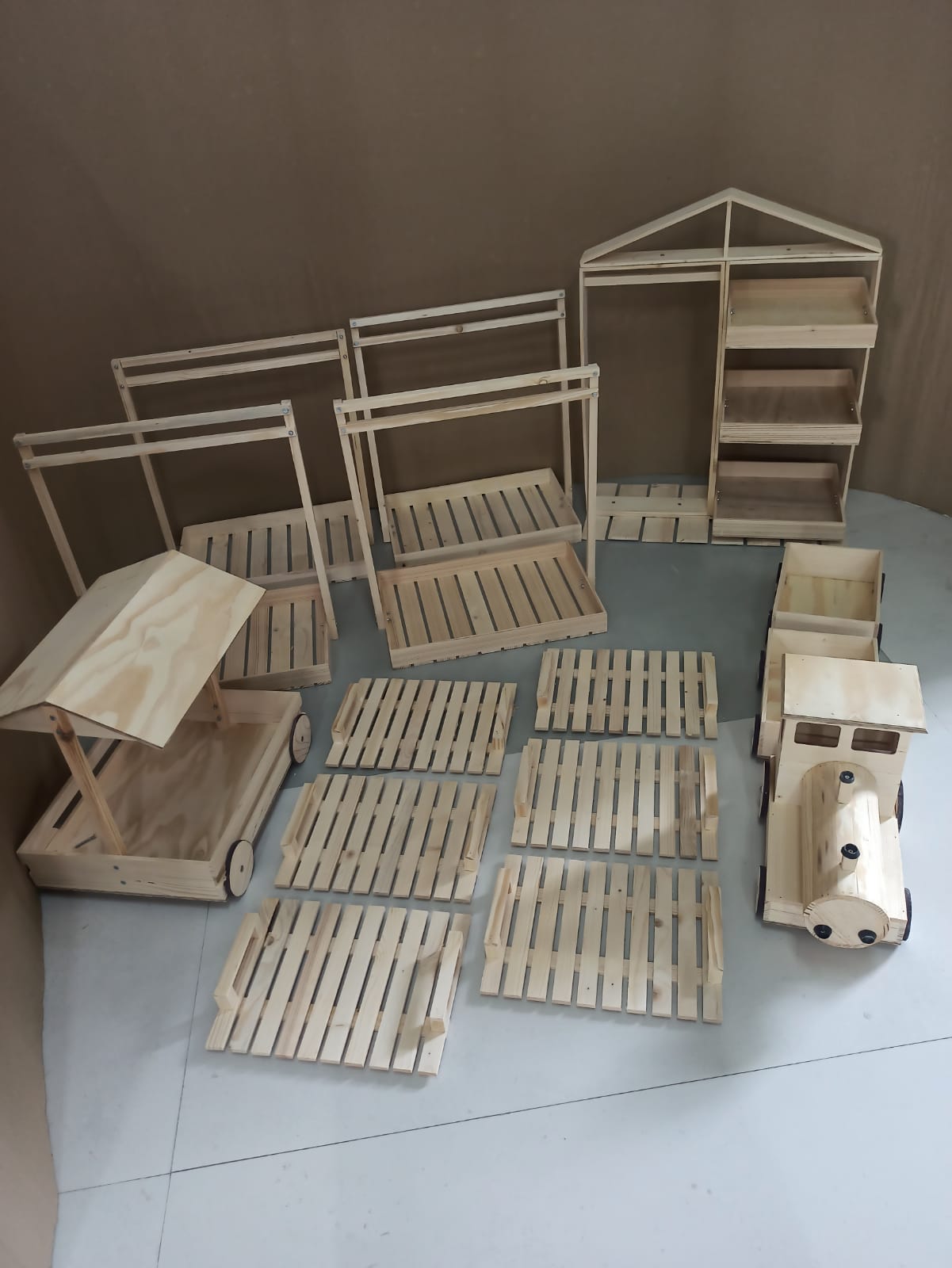 A 13 piece Trousseau set, Perfect for baby shower gifting Occasion. The trays are best suited for any baby shower need. The set comes in 2 finishes, Natural/Pinewood and Colored Variants.